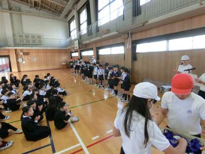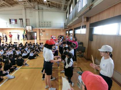 ・1位〜3位のたてわり班に6年生から手作りメダルが渡されました。