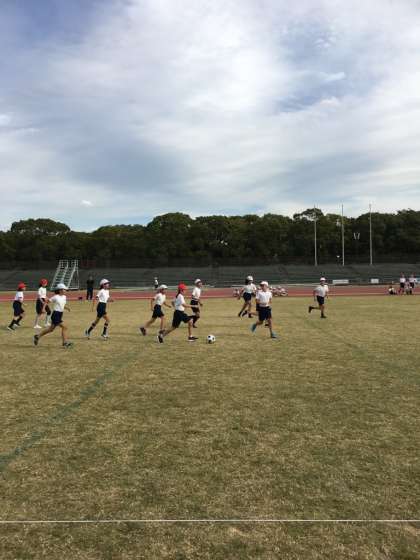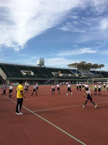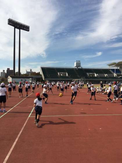 午後は、長居第二陸上競技場に移動し、昼食後、ドッジボールやサッカーを他校の児童と交流しました。