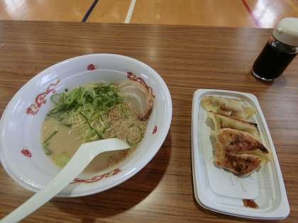 ◯自分たちで作った餃子と一風堂の店員さんに作っていただいたラーメン。