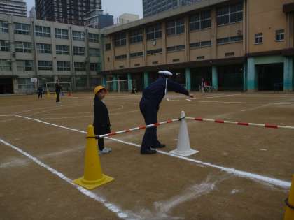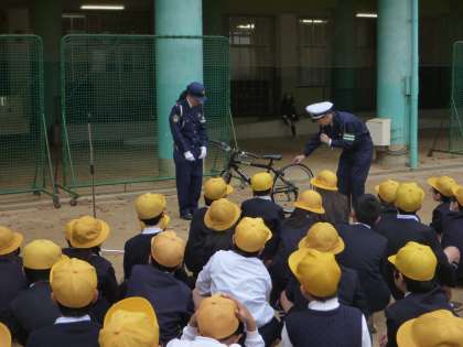 27日(水)に浪速警察署交通課から交通安全指導に来ていただきました。