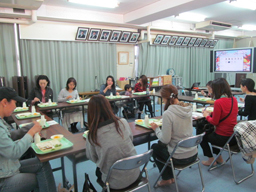 今回は「大阪市の学校給食について」と「和食のすすめについて」の講話の後、給食室の調理風景を映像で見ていただきながら子どもたちがいつも食べている給食を試食していただきました。
