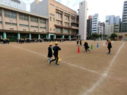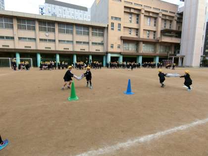 〇「しんちょうリレー」をたてわり班で楽しみました。