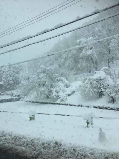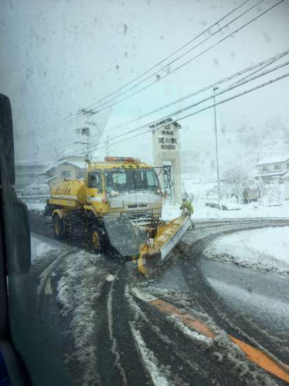 ○バスは高速道路を出て国道9号線を走っていいます。風景は雪国そのもの。児童からは「近畿とは思われへん」との声。