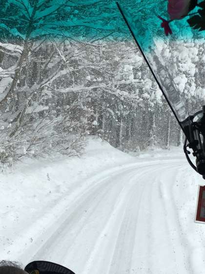 ○チェーン装着のお陰で雪道をゆっくり進んでいます。