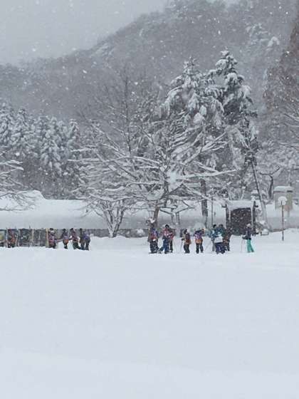 ○今、スキー実習を終え宿舎に戻り、班ごとに順次、入浴。