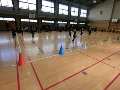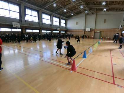 ・その名の通り、歩いてコーンを折り返しボールを次の人に渡します。たてわり班で楽し みました。