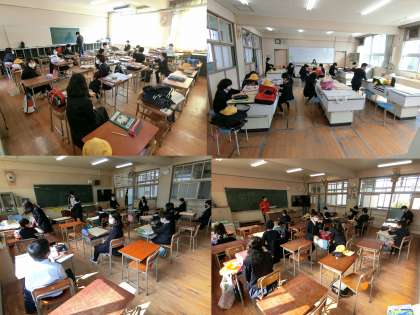 1年1組⇒教室と少人数学習教室、1年2組⇒教室と理科室、2年⇒教室と図工室、4年⇒教室と家庭科室、5年⇒教室と6年の教室