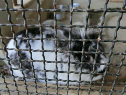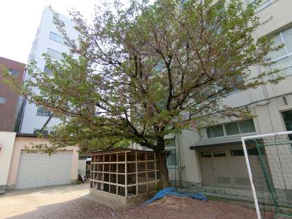 ウサギ小屋のまわりには桜の花びらがいっぱいです。その様子をウサギの「もみじ」は物憂げに眺めています。早く、児童の元気な姿が学校に戻ってきてほしいものです。