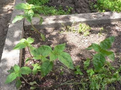 落ちたのでしょうか。ひまわりの芽が出て育っています。