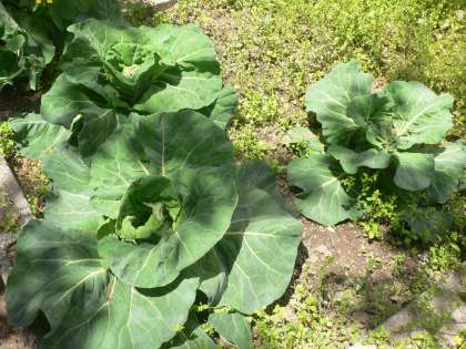 3年生の学習園には、キャベツが3つ大きく育っています。