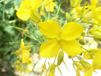 ピンクで花びらは5枚です。アブラナは黄色い花で、花びらは