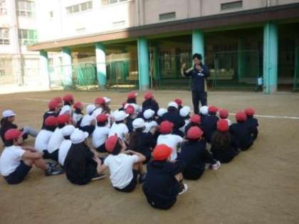 セレッソ大阪から2人のコーチが講師として来校されました。2時間にわたって3,4年の子どもたちにサッカーボールを使ったゲームを教えてくれました。苦手と言っていた子どもたちの「楽しかった。」という言葉がたいへんうれしかったです。