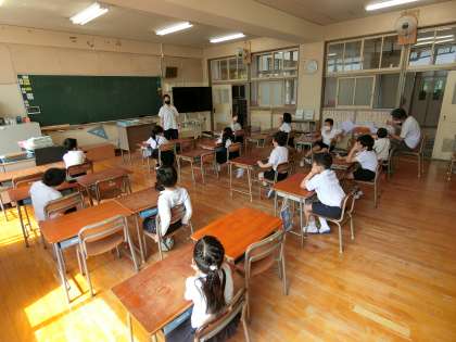 〇始業式を放送で行いました。校訓「強く・正しく・朗らかに」、三密「密閉・密集・密接」を避けることについて話をしました。