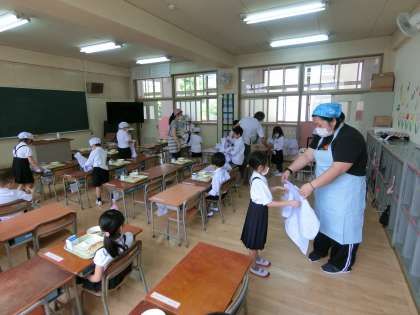 献立は「マーボーはるさめ・おさつパン(サツマイモ入り)・牛乳」