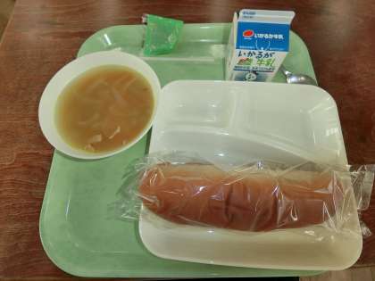 本日の献立 「てぼ豆のスープ、パン、牛乳」