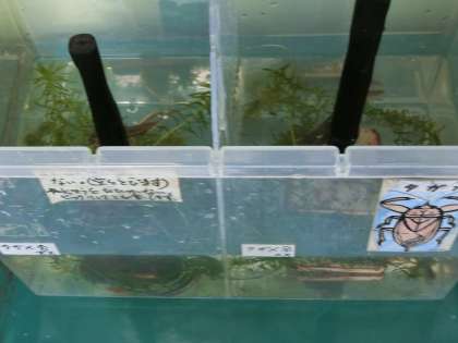 ・職員室前で水槽に入れて展示しています。