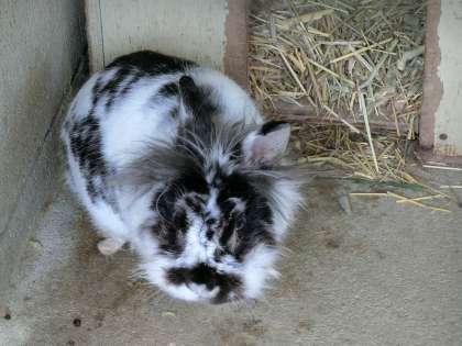 児童集会で全校児童が運動場にそろったので飼育小屋のウサギの「もみじ」もうれしそうです。