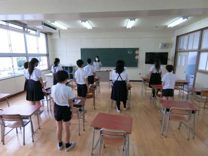 ・他の学年の児童が登校がない中で、8時30分には6年生全員が教室にそろっていました。