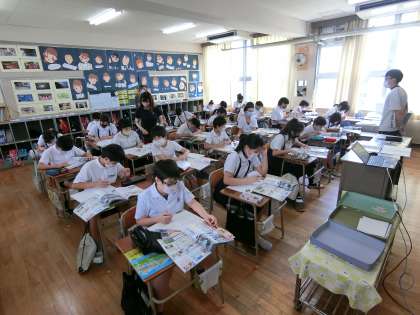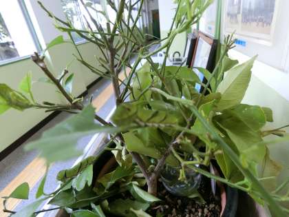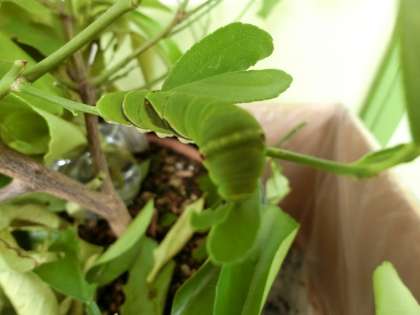 ・昨日から職員室の前のミカンの鉢植えを住み家にしている「あおむし」