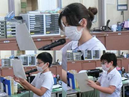 ・給食を終えた後、13時10分から校内放送で行いました。