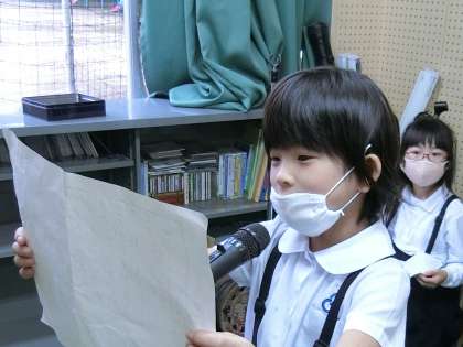 〇発表は2年2組。当初の予定は、来週の火曜日でしたが、本日予定していた5年の遠足が雨天延期となったため、急遽本日の発表となりました。本年度は、授業日数が短いため、このような急な変更が出てまいります。そんな中で、4人の子ども達はしっかり発表することができました。