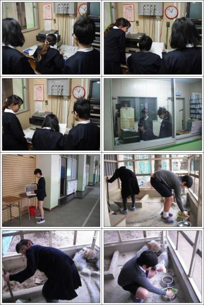 たんぽぽの世話をしている飼育委員会の人がこんな会話をしながら飼育小屋の掃除をしていました。