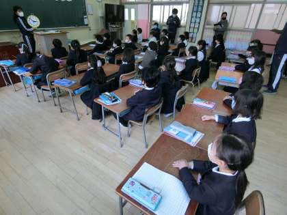 ・公開授業として1年生の学習の様子を職員が参観しました。