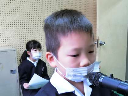 〇発表は1年生。なわとびやこままわしが楽しかったということでした。