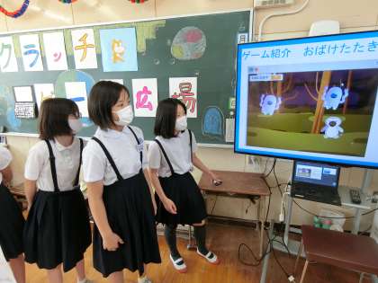 ※6年生は自分たちで作成したパソコンゲームを楽しんでもらう企画でした。一生懸命プログラミングしたゲームを楽しんでもらえるのは良い気分だったことでしょう。