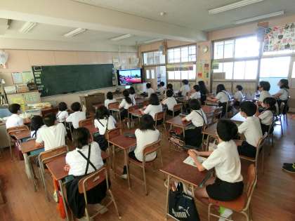 ・本日は、5年生・6年生を対象に、一泊移住での様子の写真を動画に編集して鑑賞しま した。猛暑の中でカッターやカヌー、キャンプファイヤー、カレー作りを協力してやり 通した経験は、これからの活動の糧になると思っています。