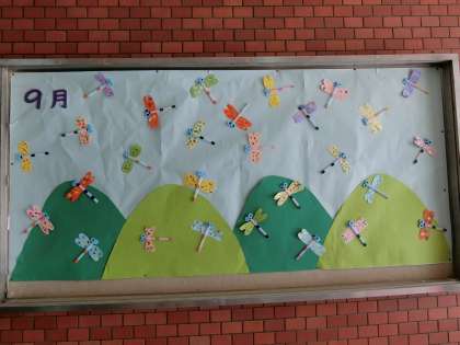 玄関掲示 今月の担当は4年 たくさんのトンボが秋を感じさせています。