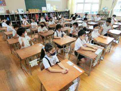 というような問題でした。児童は思い思いの答えを楽しんでいました。