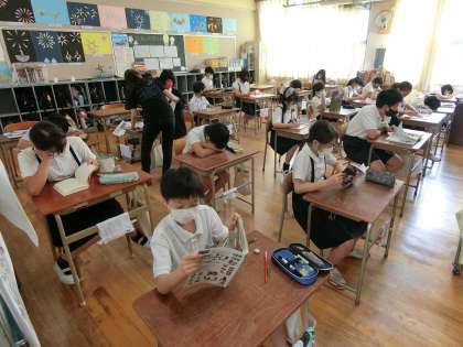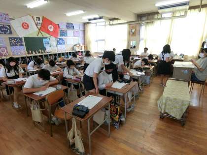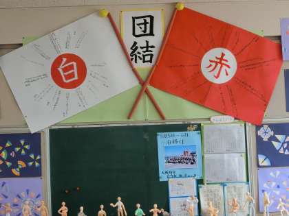〇6年の教室には「団結」の文字。運動会では白組も紅組も力を合わせて頑張ってほしいものです。