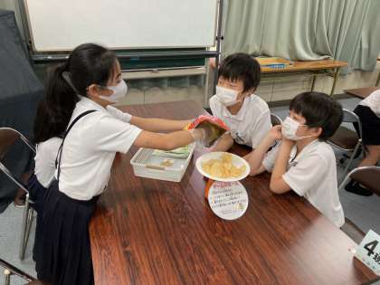 10月1日はカルビー株式会社の方に、4年生を対象にスナックスクールをしていただきました。