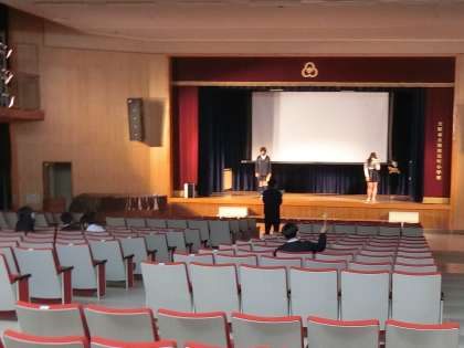 〇11月21日(日)の学習発表会に向けて、講堂での練習が始まりました。