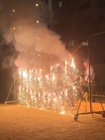 ○今日は午後2時からPTA主催によるスポーツラリーが行われ100人を越える児童が参加しました。その後、午後5時10分から花火大会が行われました。