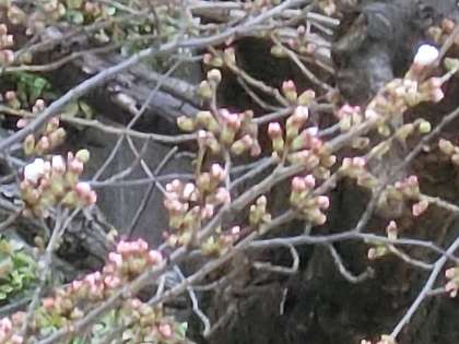 ・桜の枝に花が小さく咲きました。