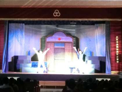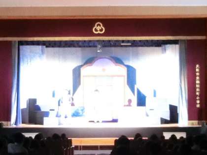 〇劇鑑賞会 全学年が講堂で劇団 民話芸術座「銀河鉄道の夜」を鑑賞しました。