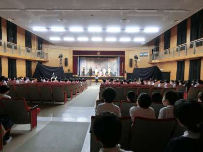 ・劇が終わって講堂を出る児童からは「楽しかった」「おもしろかった」「泣きそうになった」の声がありました。