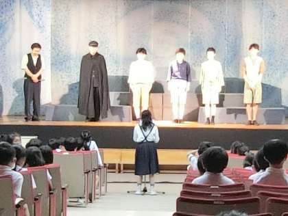 ・最後に児童代表が劇団の皆さんにお礼のことばを伝えました。