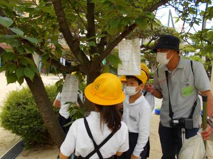 生き物を見つけたり、触ったりすることに対して消極的だった児童も「〇〇見つけた!」「これは何ですか?」など楽しそうに活動に参加していました。生物多様性に気付くことのできた良い機会となりました。
