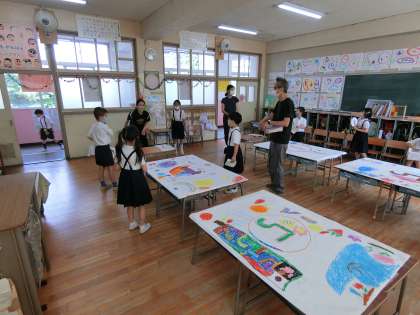 〇今日は、なんもとまつり。各学級で出し物を計画・運営しお客さんを迎え入れ楽しんでもらいます。各学級を前半と後半の2つに分け、お店をする側とたてわり班でお店をめぐる側に分けます。望ましい人間形成づくりのために本校では大切にしている取り組みです。