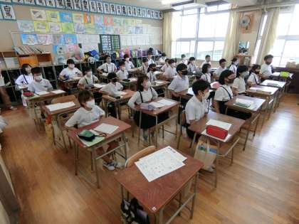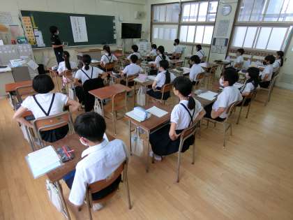〇本日、4年〜6年はプールで着衣泳を予定していましたが、天候が良くなかったので残念ながら中止となりました。スポーツ指導員の方に動画を通して講習会をしていただきました。
