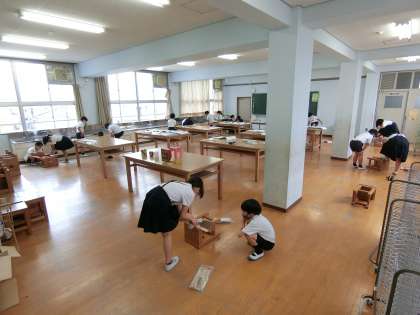 〇4年2組では図画工作でのこぎりを使っていました。ペアになり、安全を確認して活動をしていました。