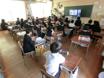 先生の小さい頃の写真が各教室のモニター画面に映し出され、先生の名前を当てるクイズでした。どの学年の児童も画面に映る子がどの先生なのかを一生懸命考えていました。それぞれに面影があり楽しいクイズでした。校長 牧