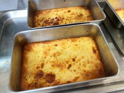今日の給食では、手作りデザートとして「焼きプリン」が登場しました。