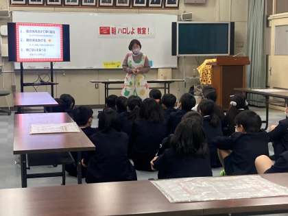2月15日(木)にカルビー株式会社の方に来ていただき、6年生で「朝ハロしよ!教室」を実施しました。