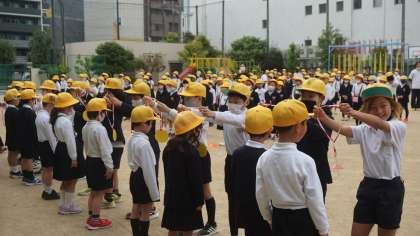 今日、新1年生との対面式を行いました。2〜6年生と1年生が正式に顔を合わせる初めの日です。