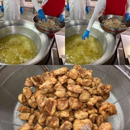 今日は衣を手付けして揚げるトンカツがでました。