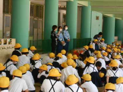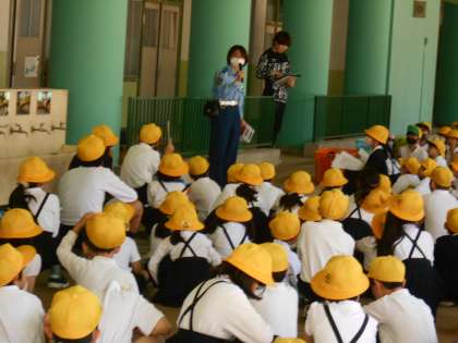 本日は、浪速警察の方を招いて安全な歩行に関する交通安全指導を実施しました。
